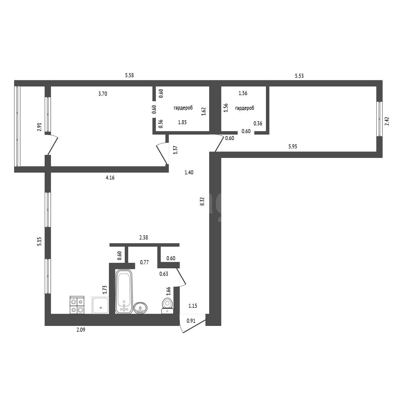 Квартира, 3-комн., 58.4 м², этаж 5/5