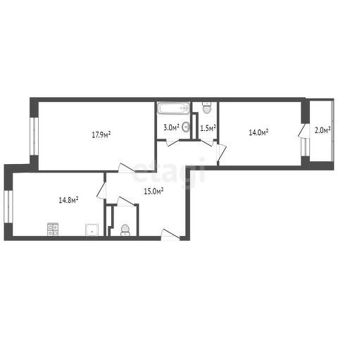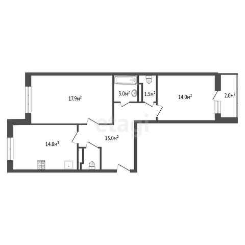 2 - комн. квартира | 69.9 м² | 13/17эт.